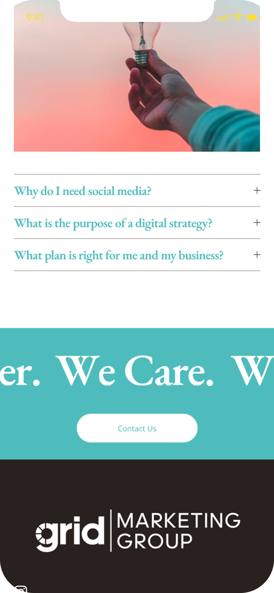 Grid Marketing Group is a local marketing firm that covers every area of marketing needs. Client wanted an affordable solution for a new website, so the direction was a SquareSpace build and design.
